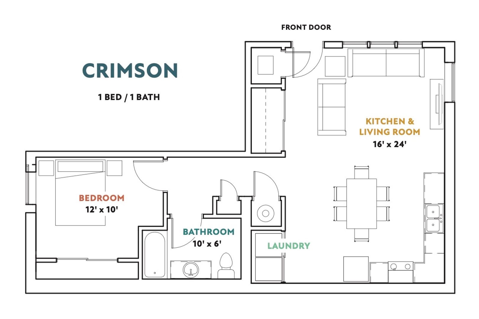 Step into the Crimson unit, a 1-bedroom, 1-bathroom single-story apartment with a sleek, modern layout. Beautiful hardwood-style flooring flows throughout, while the kitchen shines with a stainless steel farmhouse sink, granite countertops, solid wood cabinets, and plenty of natural light. Built-in shelves and generous closet space provide ample room for storage, keeping your home organized and clutter-free. Plus, with this pet-friendly community, you’ll have plenty of opportunities to meet your neighbors as you explore the backyard—one paw at a time!