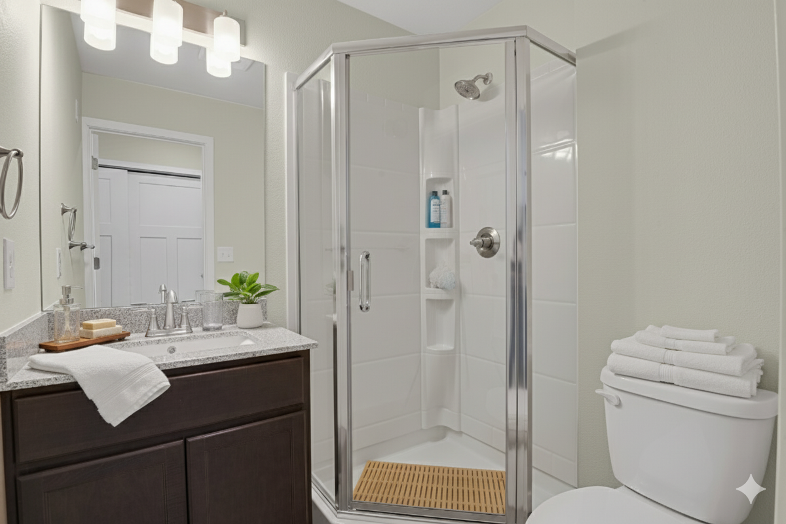 Thoughtful dual-suite layout perfect for roommates or individual privacy