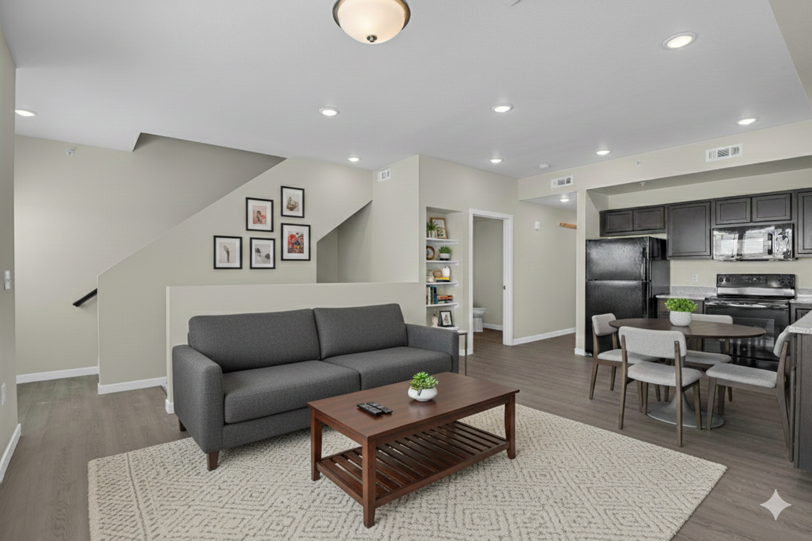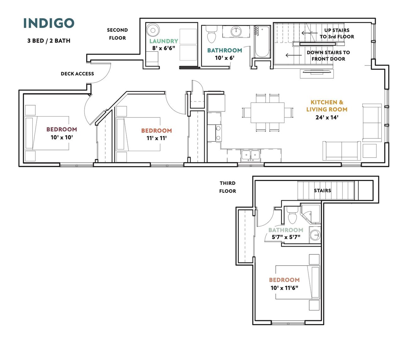 Step inside the Indigo floor plan, a 3 bedroom, 2 bathroom multi-level modern concept living space with beautiful hardwood-style flooring throughout. The Indigo features a private back door leading outside to a furnished shared space to unwind and embrace the 300 days a year of sunshine.The stylish kitchen has a stainless steel farmhouse sink, granite countertops, solid wood cabinets and an abundance of natural light flooding the space. The built-in shelves and large closets offer ample room for your belongings, keeping your home organized and clutter free. Claim your space in the main level bedroom and bathroom or head upstairs to the second floor bedroom with a private bathroom. Head out back of the unit to the furnished deck and sit outside for some fresh air or mountain views depending on unit location.